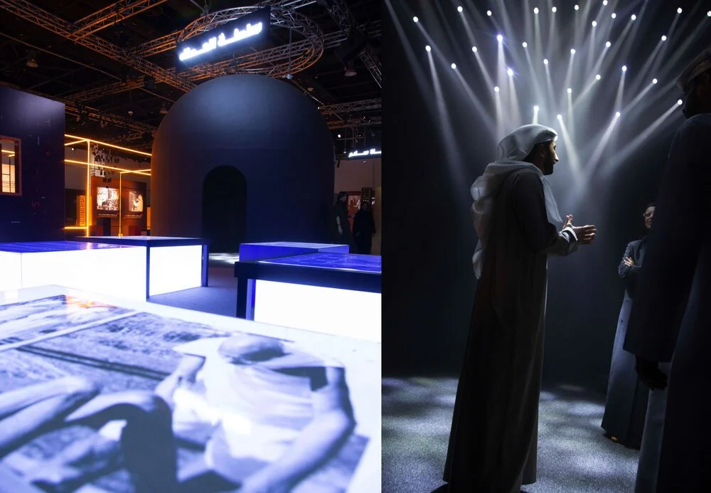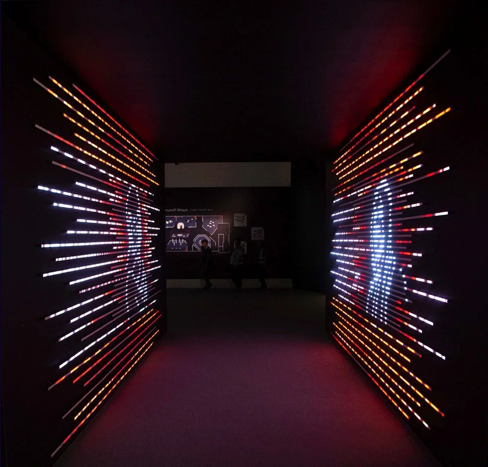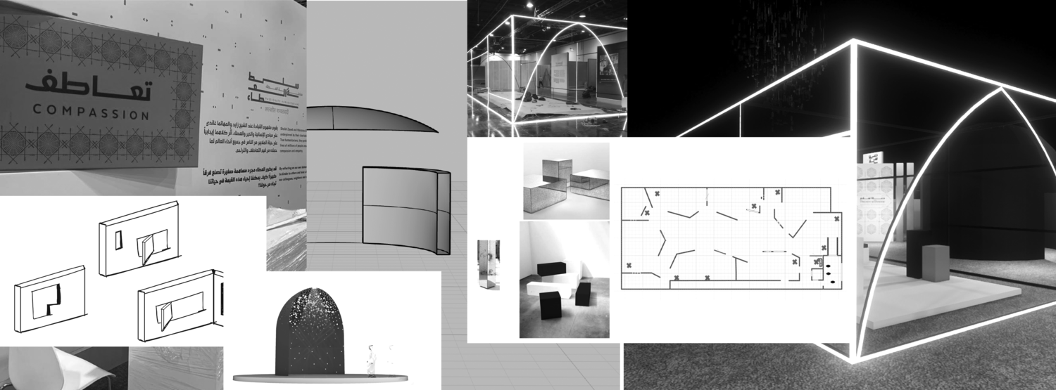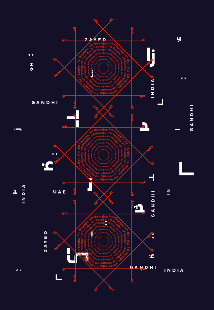 The graphic direction revolves around a bold and futuristic use of deconstructed Arabic type and extended “kashidas” forming hybrid visuals inspired by old Indian and Arabic ornaments. the direction was brought to life with moving glitches highlighting the interactive element of the exhibition.